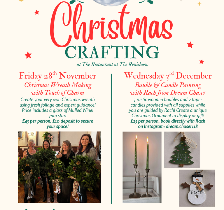 To book onto Bauble & candle painting, message Rachel on Instagram at @dream.chaser118 or get in touch with The Restaurant!