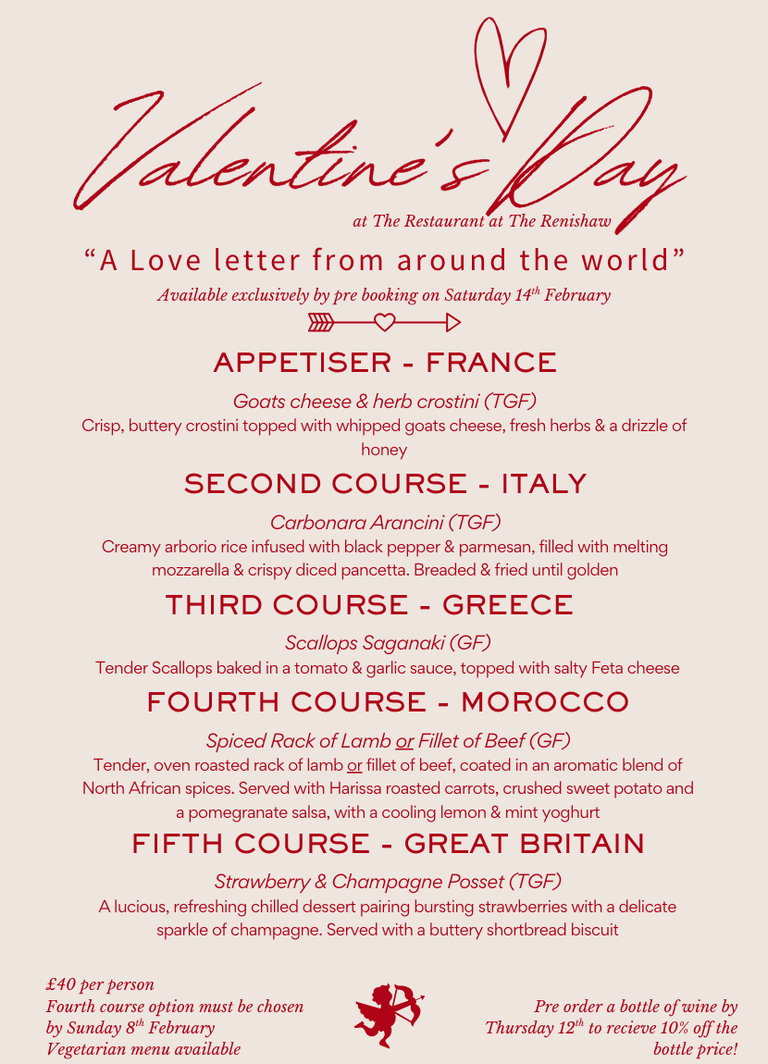 A delicious 5 course taster menu, expertly put together by Chef Sim for you to enjoy this Valentine's Day with your significant other!