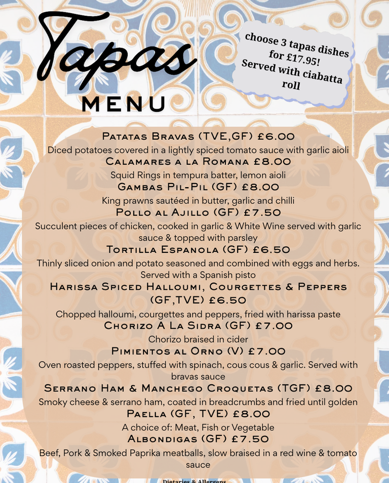 Get your table booked in for a night of delicious Tapas and tasy Sangria!